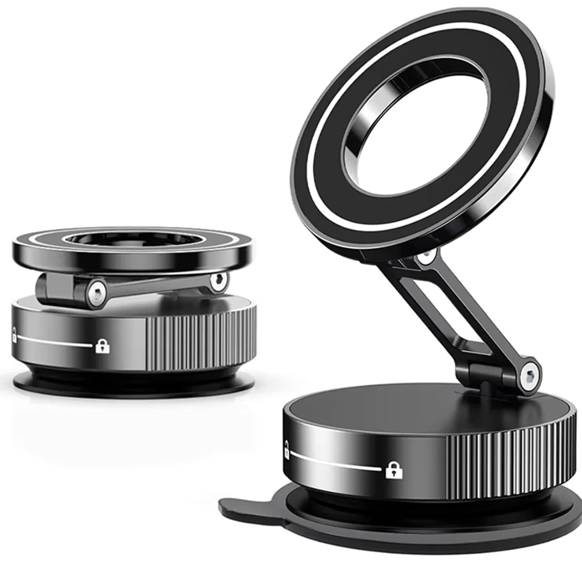 【Dual Axis Adjustment & 360° Rotation Lock】This vacuum suction cup magnetic phone stand features a unique dual axis folding metal arm that can rotate both 360 ° horizontally and 240 ° vertically,making it easy to adjust any angle to meet your needs. Unique folding design makes it unbelievably small in size.After 30000+ durability tests,it ensures stability and reliability